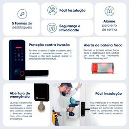 Fácil instalação: é a mesma de uma fechadura convencional, aplique em portas de madeira, metal ou compostas. Tanto do lado direito, quanto do lado esquerdo..