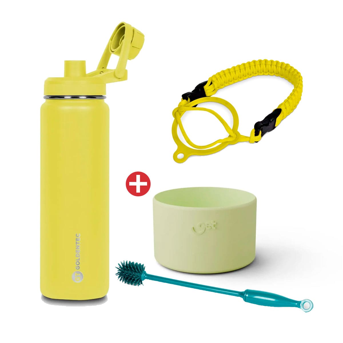 Garrafa Térmica Inox Goldentec GT Colors 750ml Amarelo + Alça + Capa de Silicone + Escova de limpeza