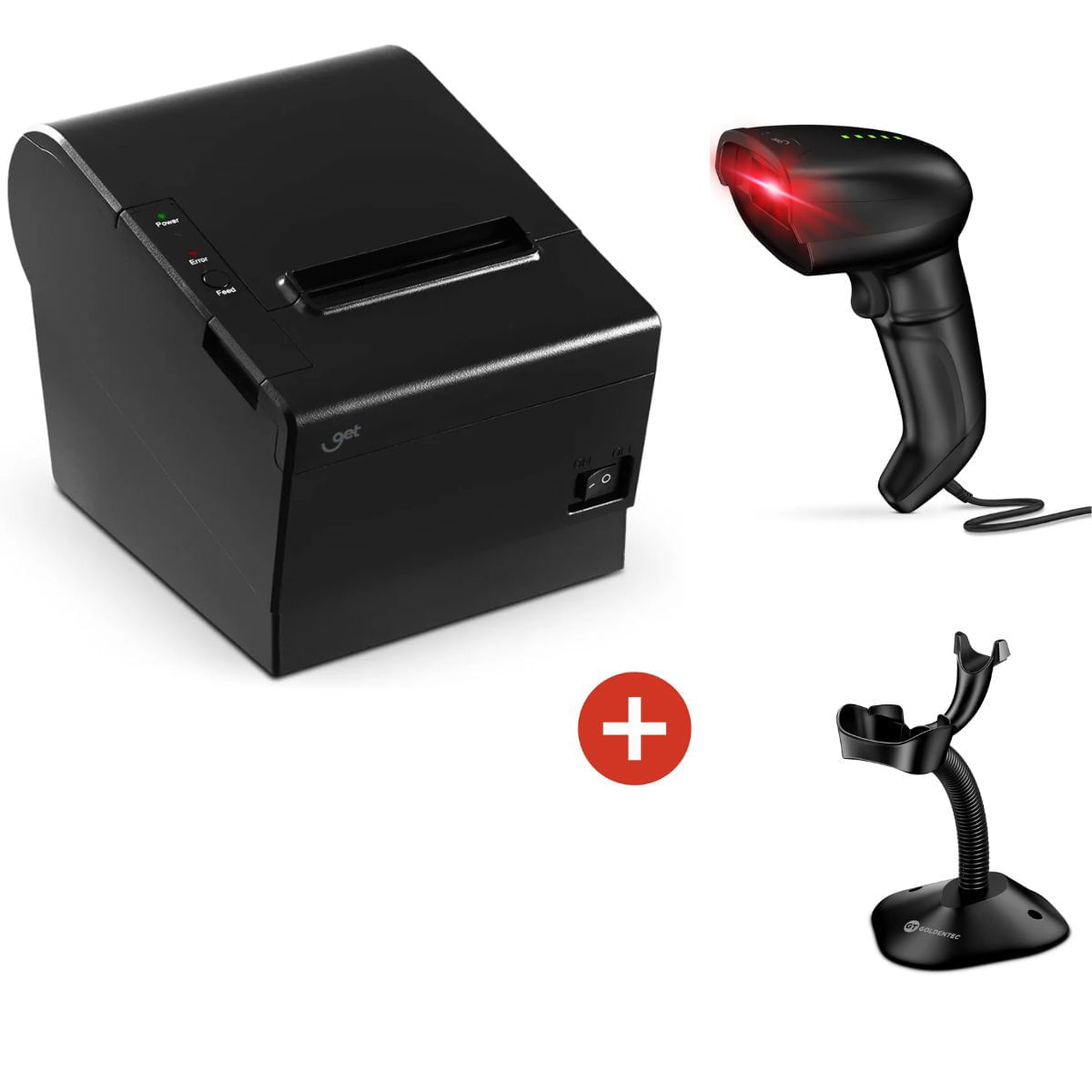 Impressora Térmica Não Fiscal Get USB, Serial, Ethernet + Leitor de Código de Barras 2D USB Get LT-200 + Base para Leitor de Código Goldentec