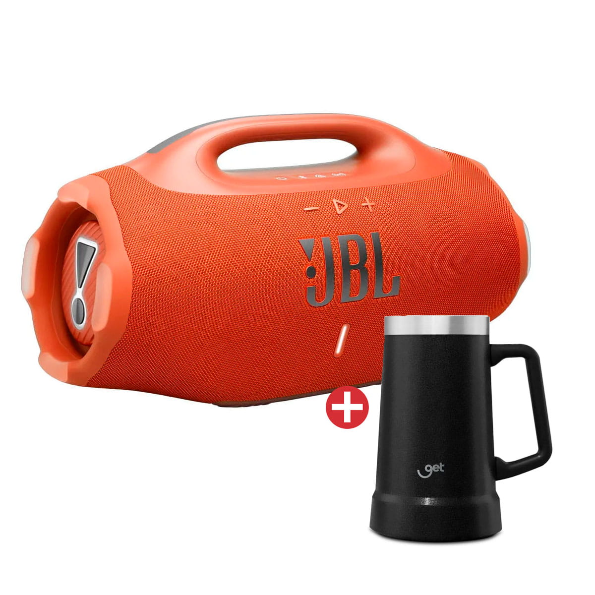 Kit com Caixa de Som Bluetooth JBL Boombox 4 210W RMS Laranja + Caneca Térmica Get Beer 730ml Preta