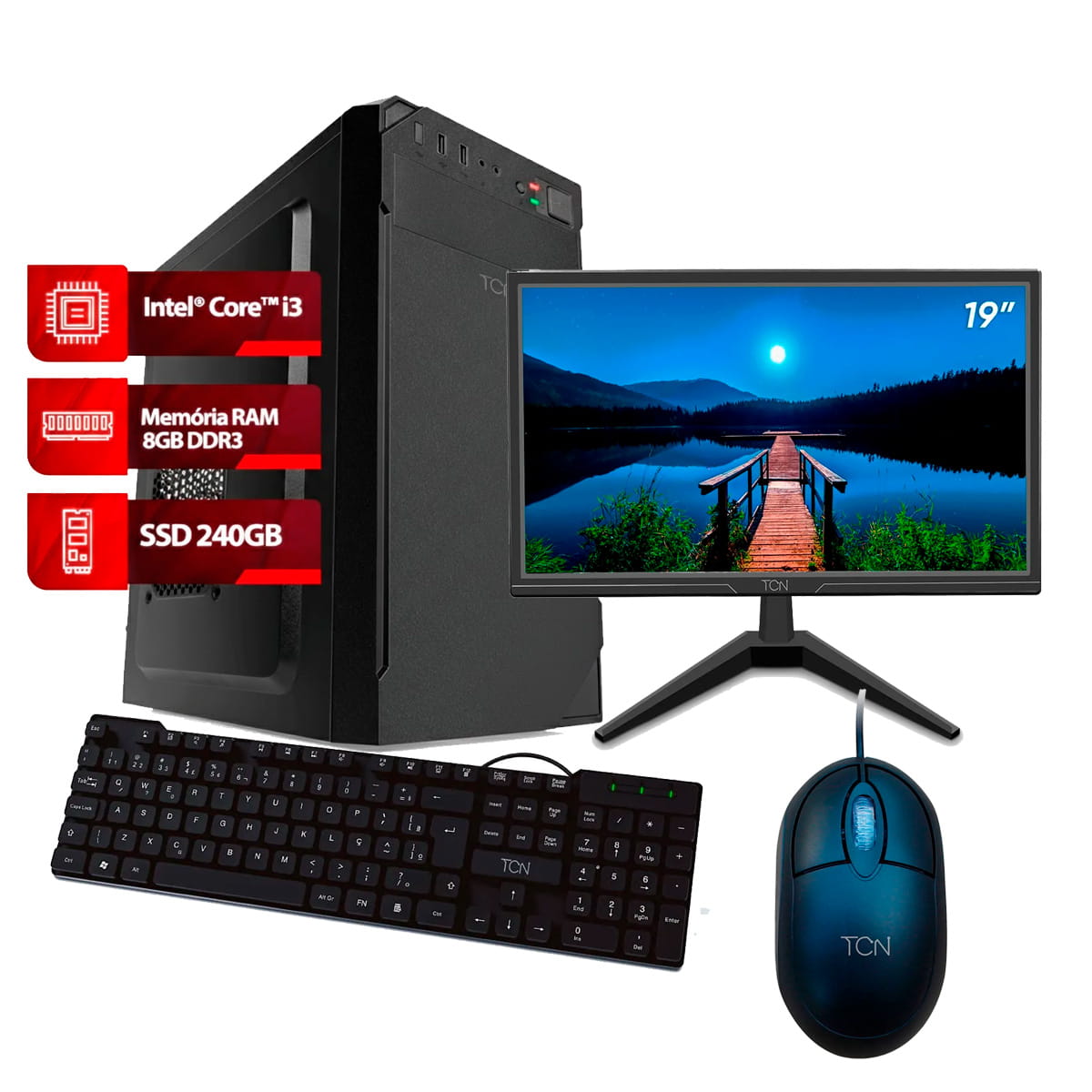 PC Completo Intel Core i3 4ª Geração TCN SSD 240GB + Monitor Office 19" LED HD TCN 60Hz 5ms + Teclado Slim USB TCN 950 ABNT2 + Mouse TCN USB 1200DPI