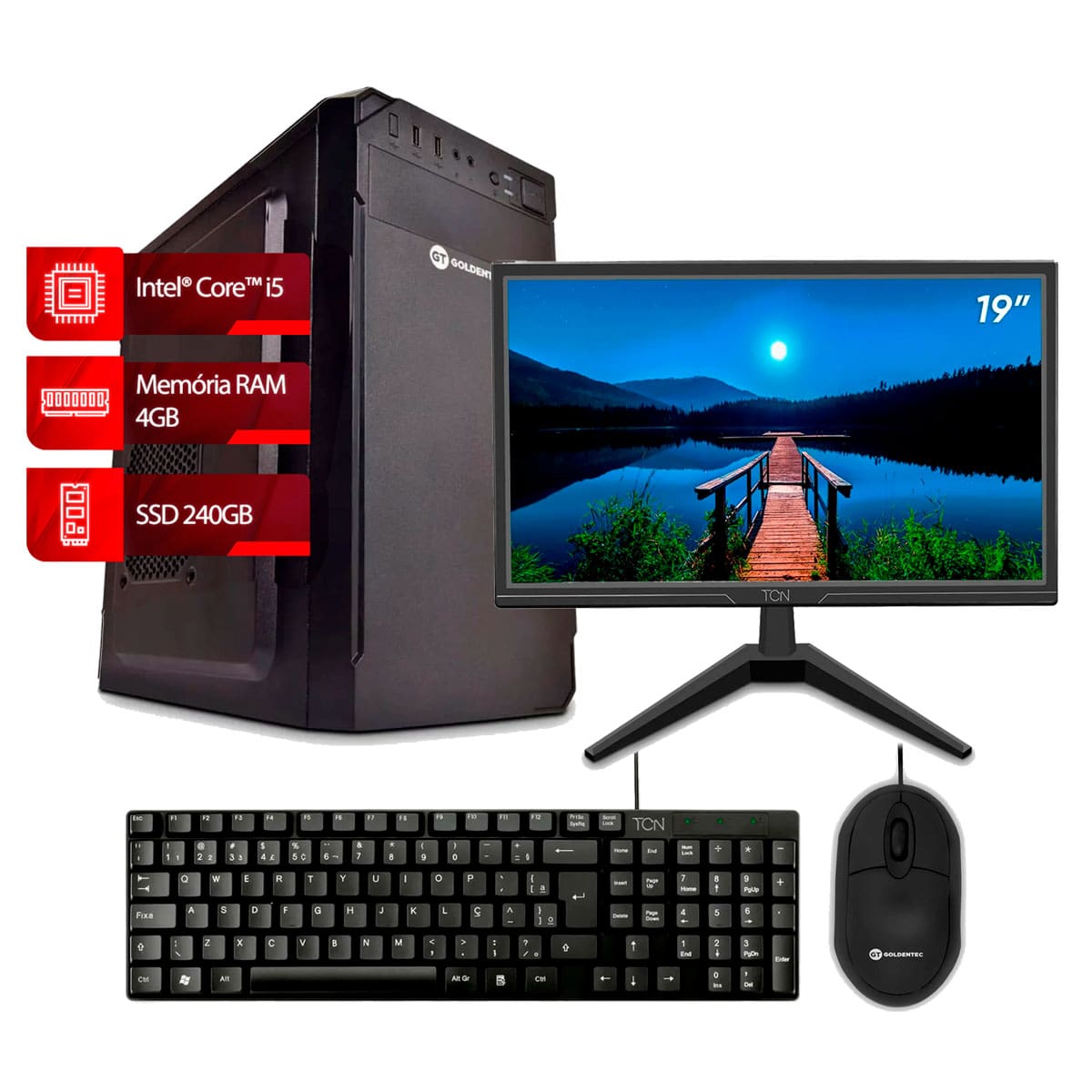 PC Completo Intel Core i5-2400 Goldentec RAM 4GB SSD 240GB Linux + Monitor Office 19 Pol. LED TCN + Teclado Slim TCN + Mouse Óptico com Fio USB