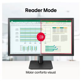 Para ajudar a diminuir a fadiga ocular e proporcionar conforto visual durante a leitura de documentos no monitor, o Modo Leitura ajusta a temperatura da cor e a luminância, tornando a experiência similar à leitura de um livro em papel.