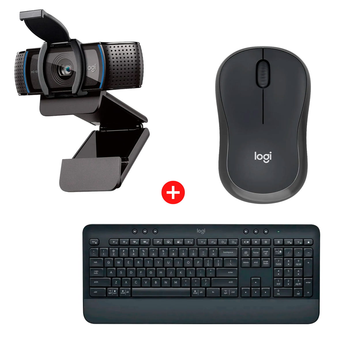 Webcam Logitech C920s Pro Full HD 1080p + Teclado Sem Fio Logitech Signature K650 USB Grafite + Mouse Sem Fio Logitech M240 Bluetooth
